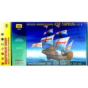 Набор деталей для сборки одной модели корабля + клей, кисточка и шесть красок.