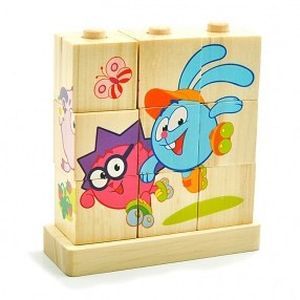 Красочные кубики с изображениями смешариков летом. Помогут малышу в развитие воображения и смекалки. На каждом кубике фрагмент из рисунка, нанизав все кубики на стержень правильно, получается картинка. Если же нанизать не правильно- картинка не сложится. Всего 9 кубиков, размер каждого 5х5 см. Общий размер картинки получается 15х15см.