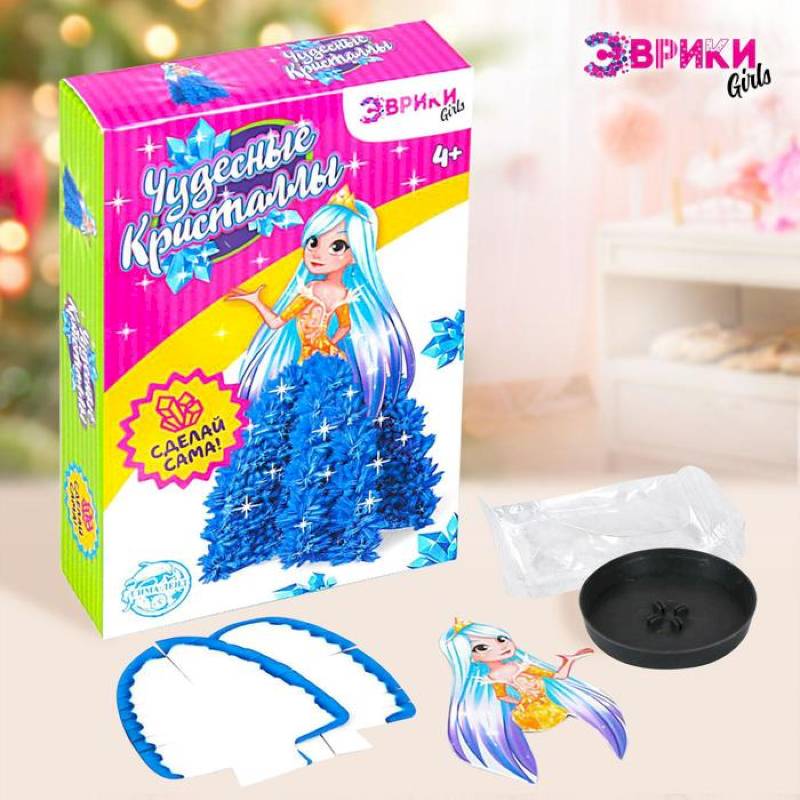 Возраст - от 4 лет. В наборе: подставка, краски, кисточка, жидкость для выращивания кристаллов, пипетка, фигурки.