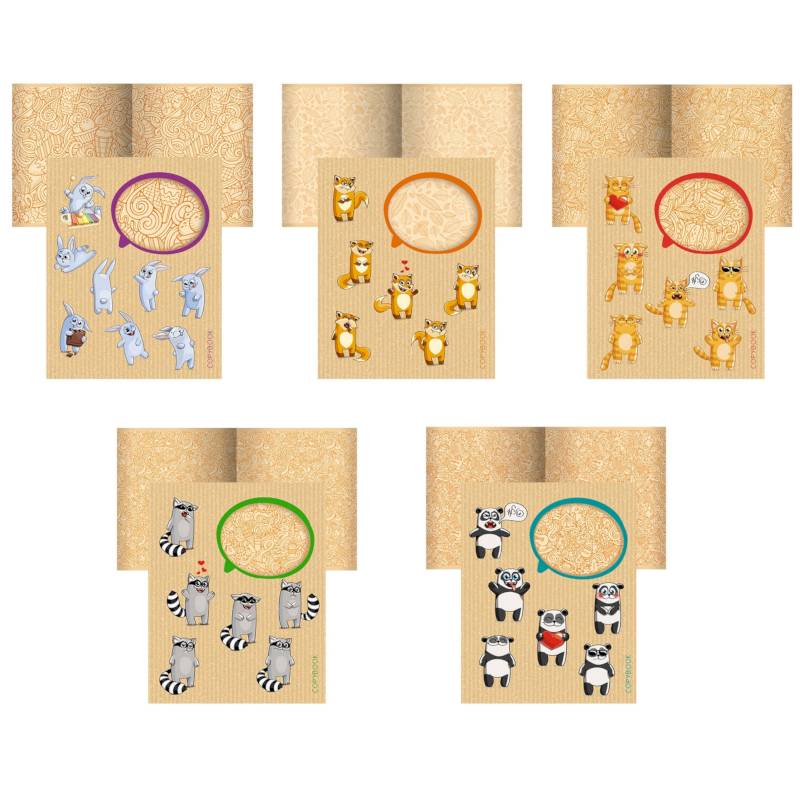 Первая обложка - крафт-картон с вырубкой, вторая обложка - мелованная бумага с пантонной печатью.
