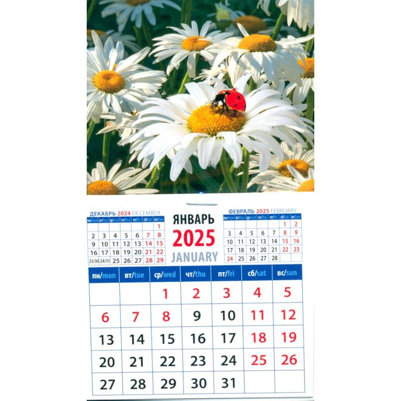 —Календарь на магните на 2025 год Божья коровка на ромашке