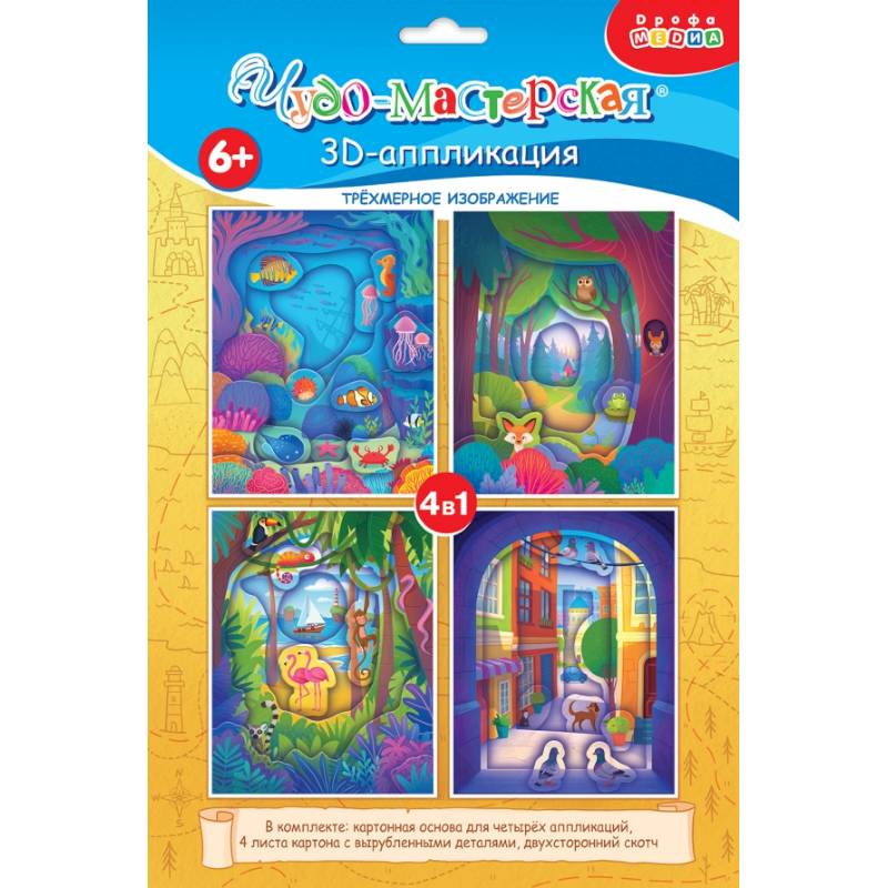 Сначала аккуратно вырежи картинки-основы по белым линиям. Детали вырезать не нужно - выдави их из листов и приклей на картинку объёмным двусторонним скотчем (большие детали на два квадратика, а маленькие - на один). Набор деталей для каждой картинки размещён на отдельном листе, это очень удобно! Последовательность приклеивания показана в инструкции. Яркие и красочные детали, наклеенные в несколько слоёв, придадут плоскому изображению удивительный 3D-эффект, создавая необычную 3D-картину.