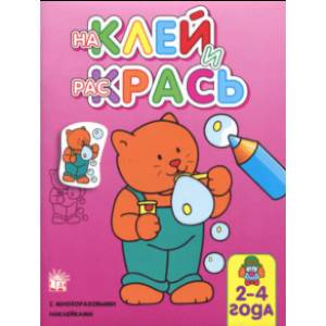 На каждой странице одна крупная картинка для раскрашивания: тут и животные, и растения, и машины, и игрушки. Картинки с толстыми контурами можно раскрасить как вздумается или найти соответствующую цветную наклейку, приклеить в угол страницы и использовать как образец.