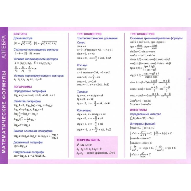 Справочные материалы в таблицах |
