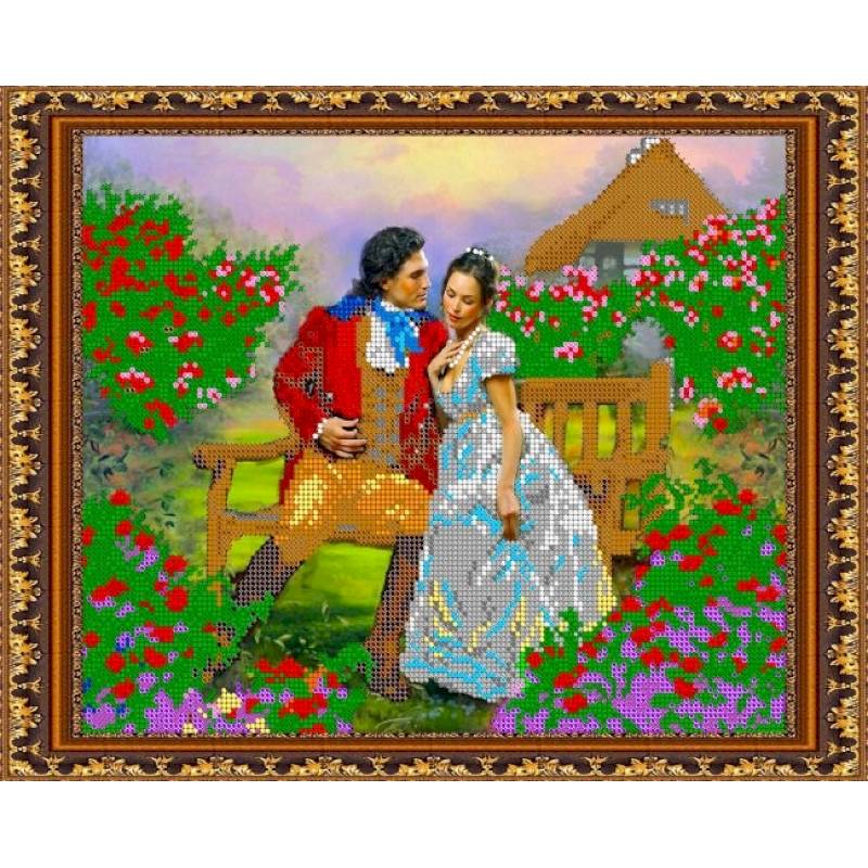 «Светлица» набор для вышивания бисером №328 «Пара в саду» бисер Чехия 30*24 см.