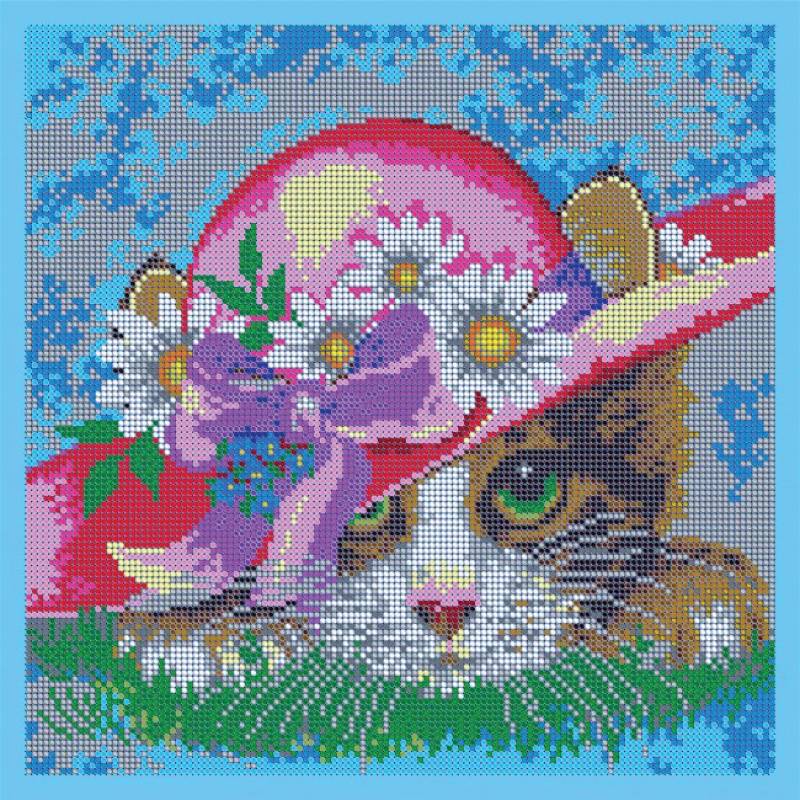 ВЛ-065П 'Котенок в шляпе' 27x27 см набор для вышивания чешским бисером 'Вышивочка'