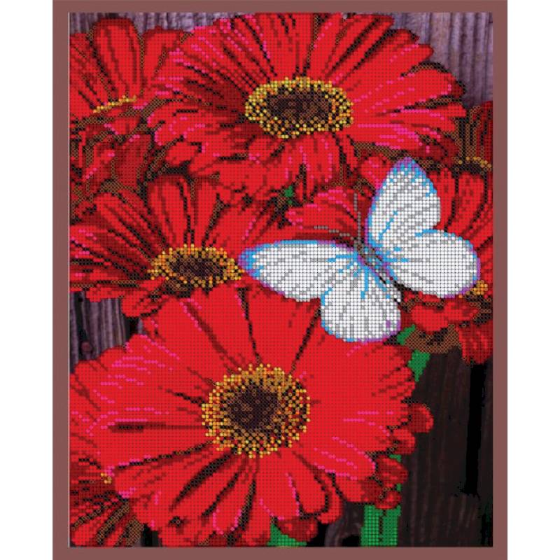 ВЛ-069 'Герберы' 24x30см набор на атласе для вышивания чешским бисером 'Вышивочка' в коробке