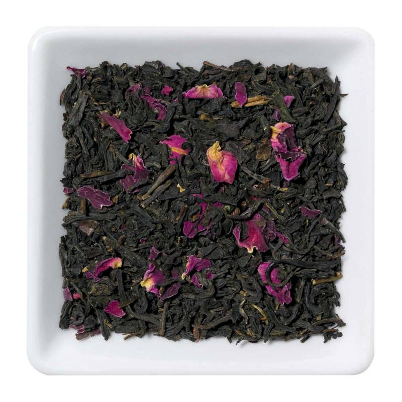 Состав: черный чай, лепестки роз. Напиток светло-коричневого цвета с мягким цветочным ароматом.